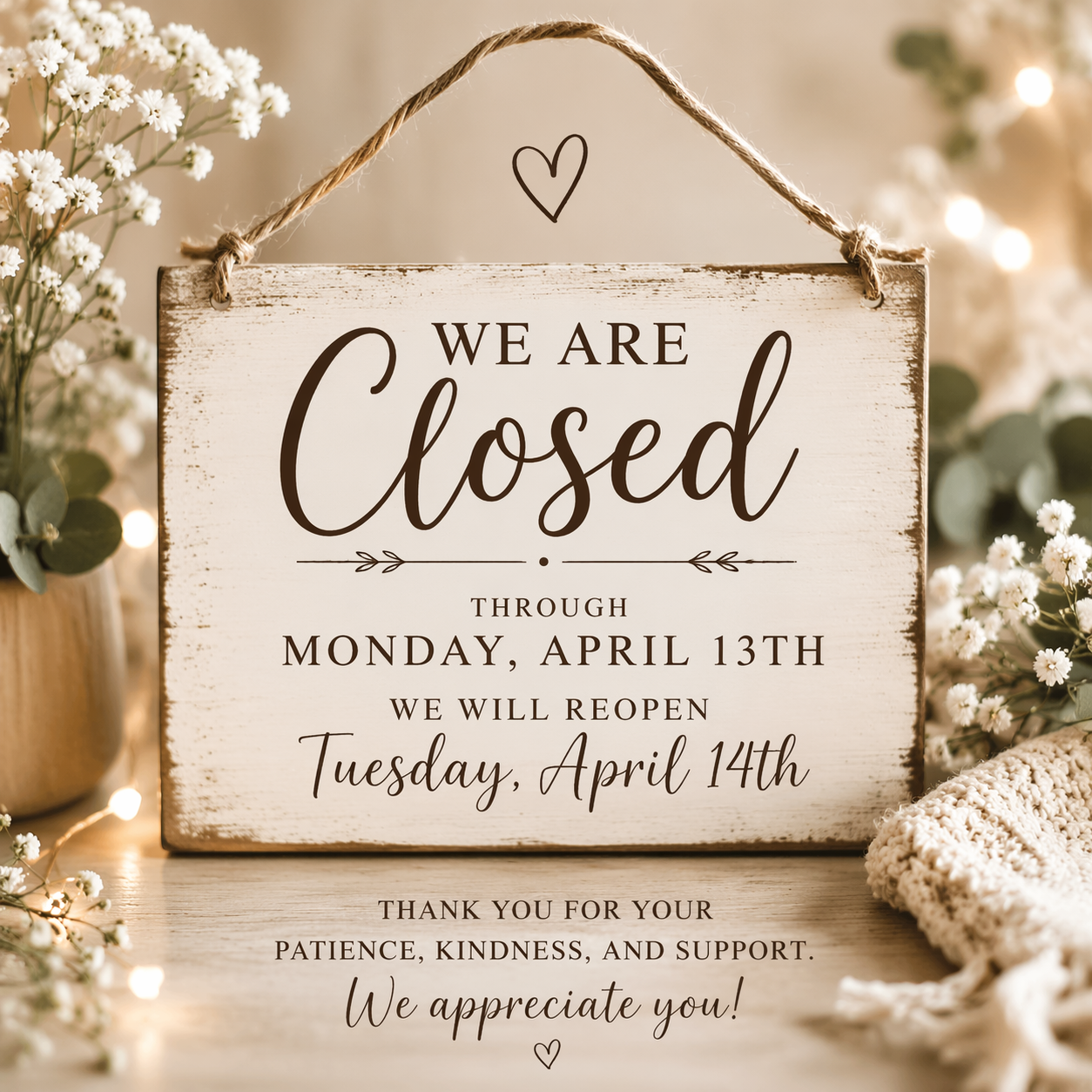 We Will Re-Open Tuesday, April 14th